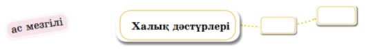 Жаңа сабақ 1-тапсырма. Адамның жас кезеңдеріне қатысты халық дәстүрлерін білесің бе? Кластер құрастыр. Осы дәстүрге сай оқыған шығармаңды қосып, кластерді толық