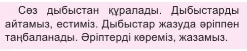 айтыңдар. 2 тапсырма ; 2-жаттығу. Тыңдалым Куар-код арқылы жұмыс Мәтінді тыңдаңдар. -Тіл дыбыстарының басқа дыбыстардан өзгешелігі неде? -Су, тіл, құс сөздеріндегі дыбыстардың орнын ауыстырып көрейік. Сөз мағынасын түсіндіңдер ме? Анықтамамен жұмыс.