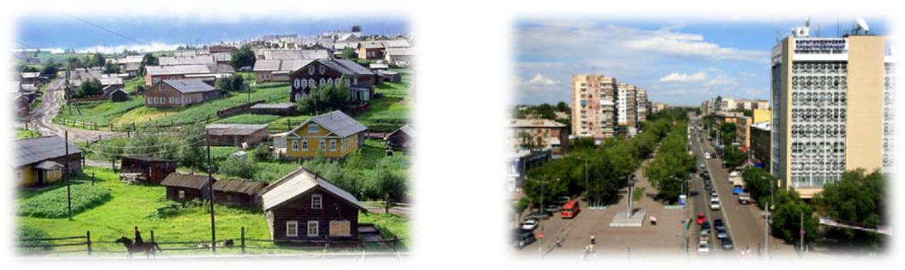 Суреттерге мұқият қара. Ауыл мен қаланың тіршіліктерін салыстырып жаз.