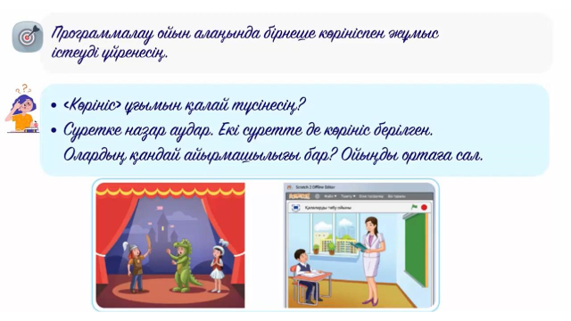 3.4.2.3 Scratch (скретч) программалау ортасында бірнеше кейіпкерлер құру;