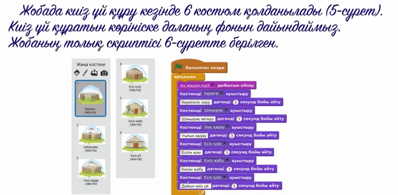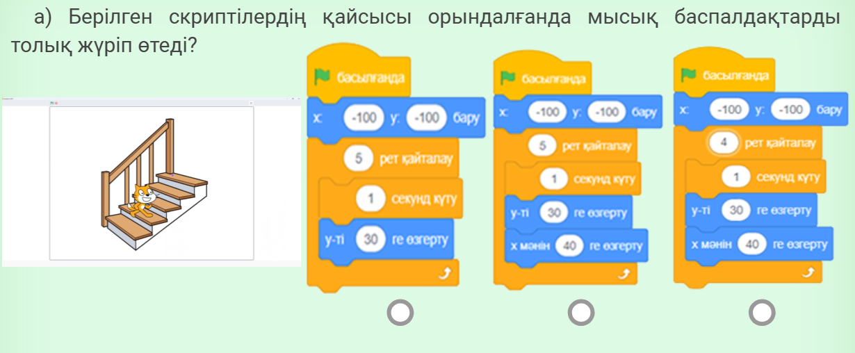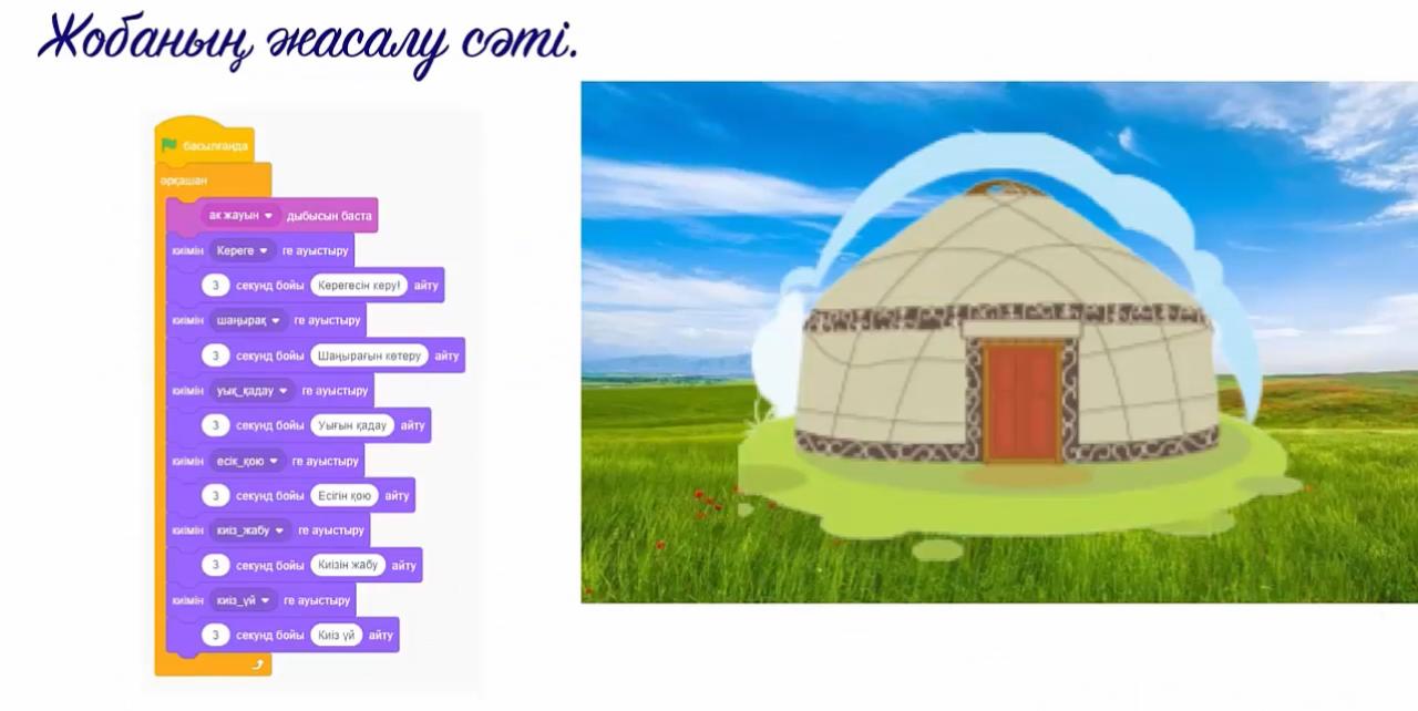 - интерактивті тапсырманы орындайды спрайттарды қосады. спрайттарға скирпт құрастырады