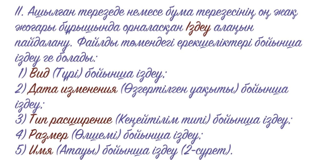 Компьютерде және құжатта ақпарат іздеу. |