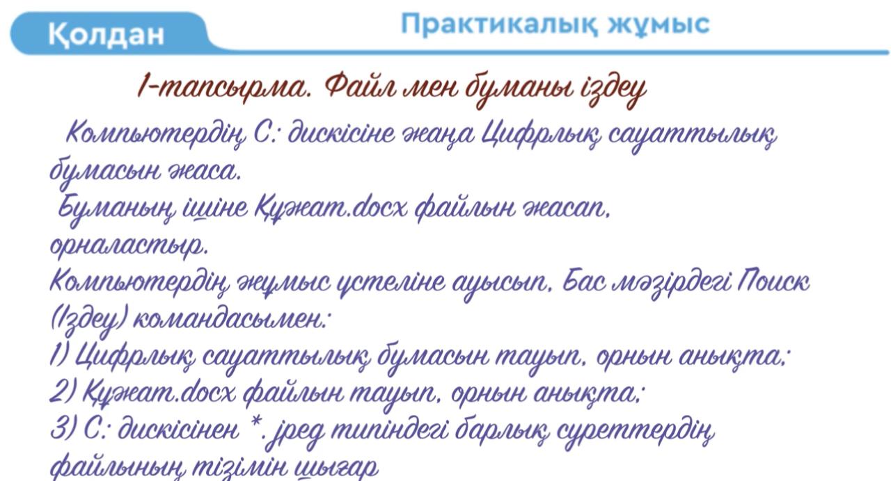 3 сынып 21 сабақ Компьютерде және құжатта ақпарат іздеу. ҚМЖ