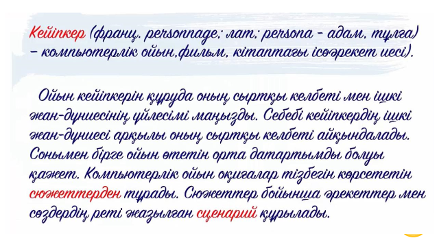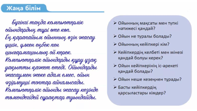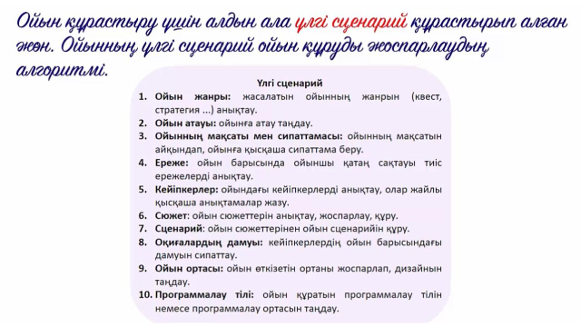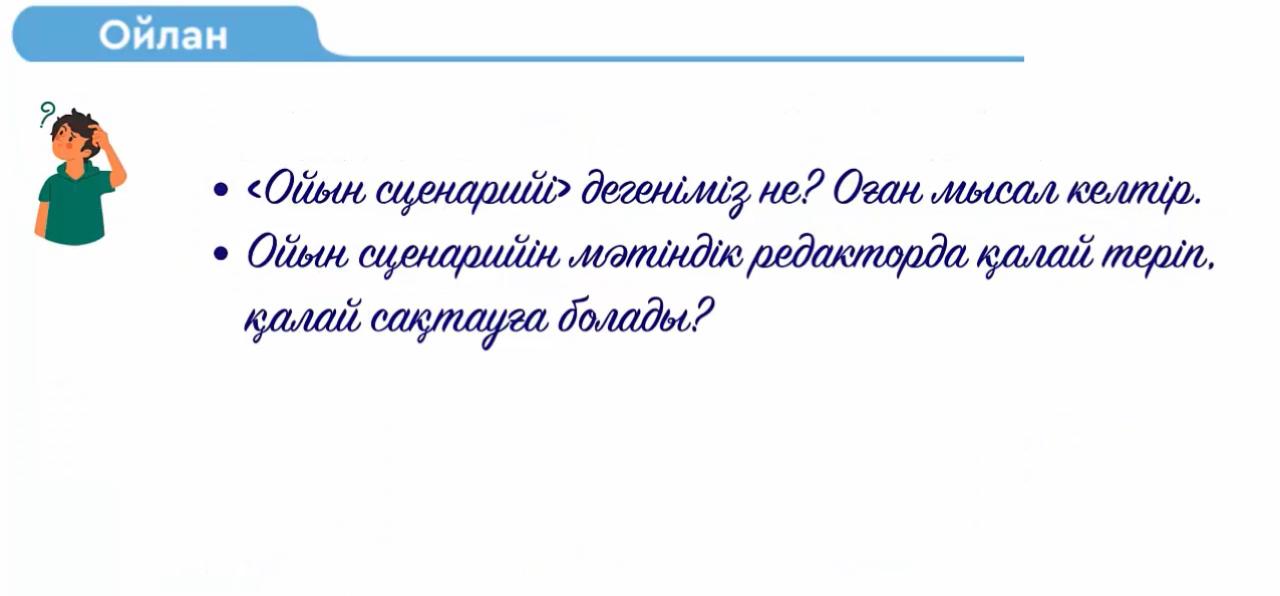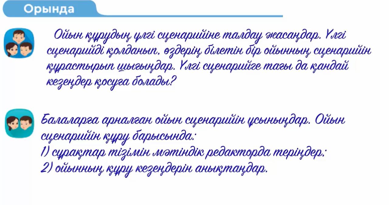 3 сынып 9 сабақ. Ойынның сценарийі ҚМЖ