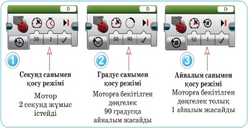 ІІІ. Жаңа материалды меңгеру Р Роботтың қозғалысын программалау үшін командалық блоктарды пайдаланамыз. Басқару блогы моторды 5 түрлі жұмыс режімінде басқарады.