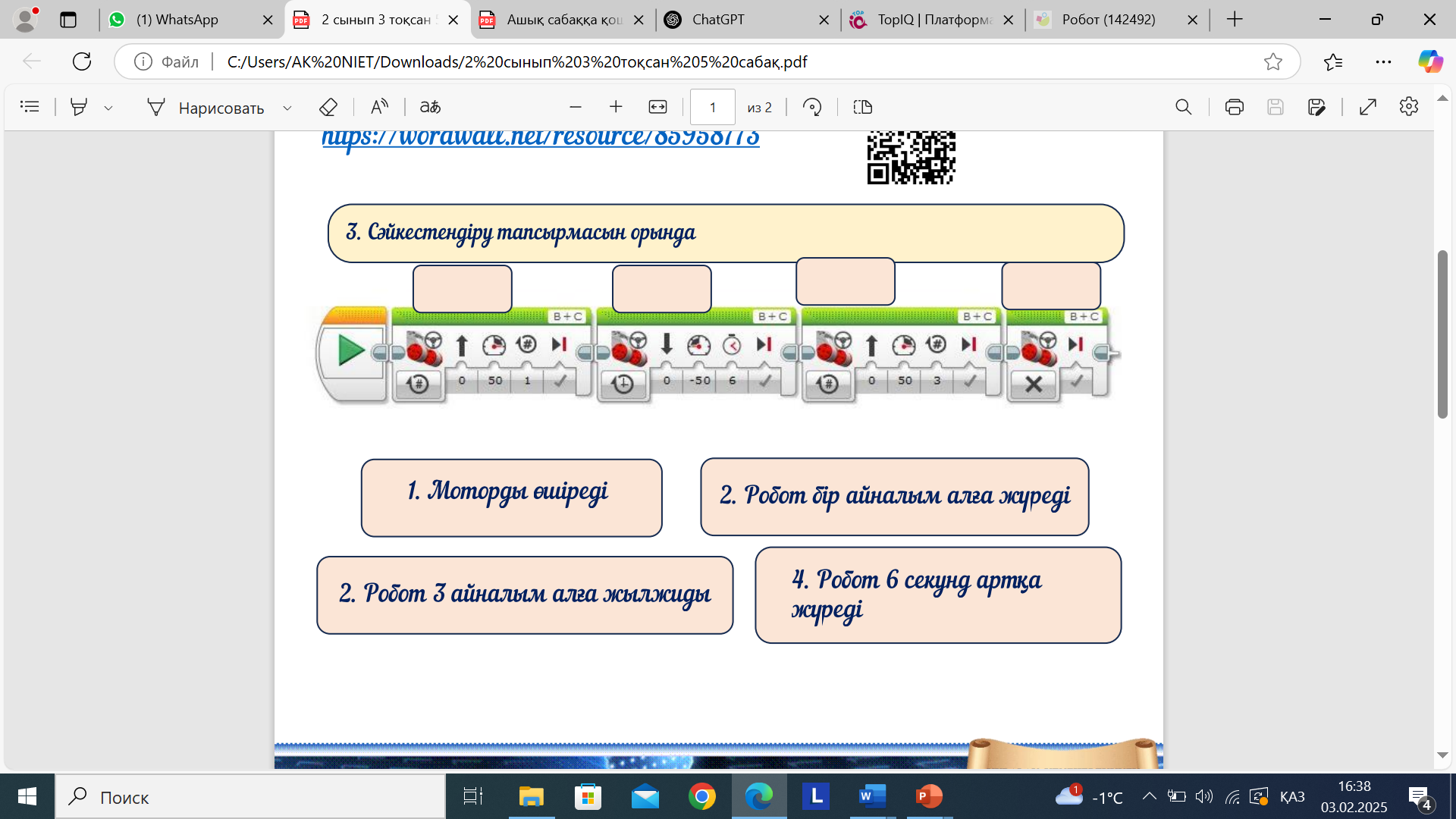 TopIQ платформасында тақырып бойынша сәйкестендіру тапсырмаларын орындайды -практикалық жұмысты орындайды - интерактивті тапсырманы орындайды. |