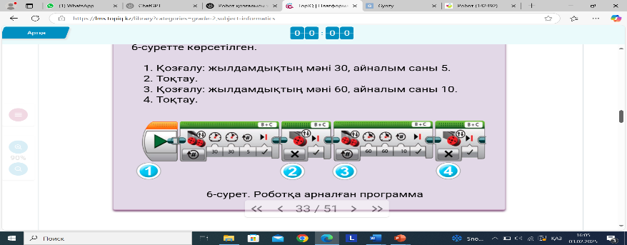 2.5.2.1 роботтың берілген жылдамдықпен алға жылжуын ұйымдастыру; 2.5.2.2. роботтың берілген жылдамдықпен артқа жылжуын ұйымдастыру; |