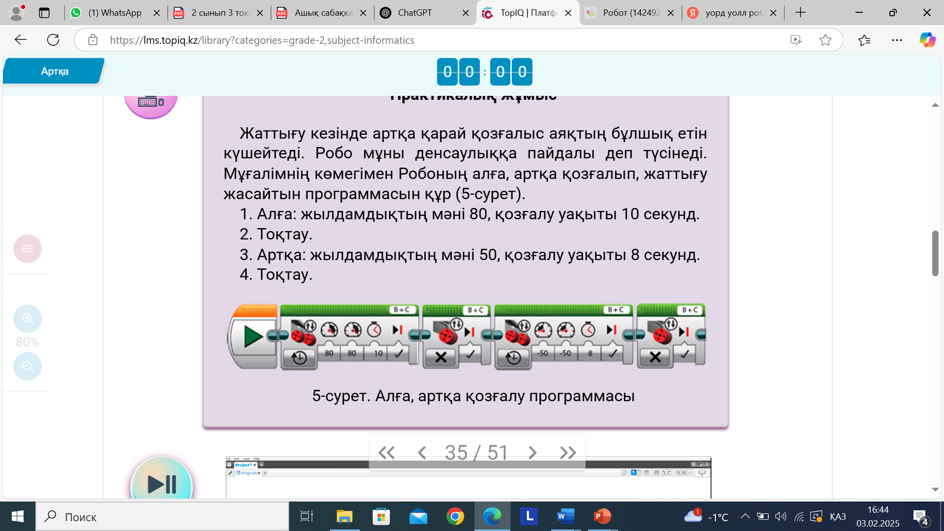 Роботтың берілген жылдамдықпен алға, артқа жылжуын ұйымдастыратын бағдарламаны жүктейді және іске асырады |