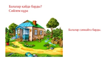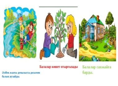 Оқылым 1.Жазғы демалыста ауылға барамын. 2.Мен үшінші сынып пен қоштастым. 3.Жазда бос уақыт көп болады. Ауылдың қасында көл бар. 4.Көлден балық аулаймын. 5.Қостұра тауына шығамын. 6.Таудың суретін саламын. 7.Кейін саяжайға барамын . 8.Саяжайда көшеттер бар. 9.Көшетке күтім керек. 10.Саяжайда алма жинаймын. 11.Тамызда «Думанға» барамын. Айтылым Суретті пайдаланып әңгіме құра. Сурет бойынша бірнеше сұрақ дайында. Жазылым Сөйлемді жалғастыр. Оқылым Жазылым Сөйлем құраңдар Айтылым Диалог құрыңдар |