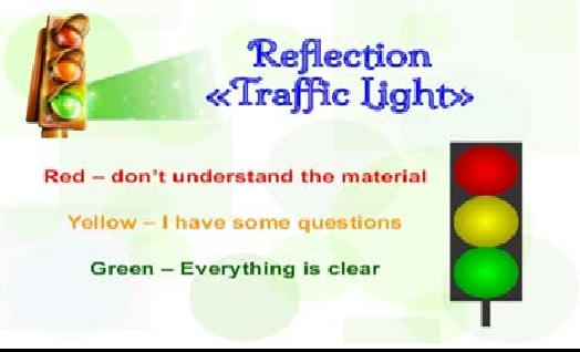 FEEDBACK Traffic light method is used to find out was the lesson clear or not. Use the stickers. |