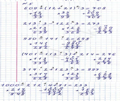 Мынадай жағдайларда: 28∙3, 269∙2, 84:3, 538:2 екі/үш таңбалы сандарды бір таңбалы санға көбейту мен бөлу алгоритмдерін қолданады |