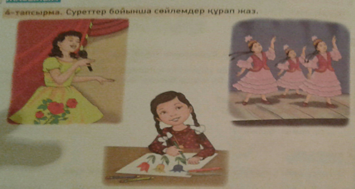 Жұптық жұмыс 4-тапсырма Суреттер бойынша екі сөйлем құрастырады.