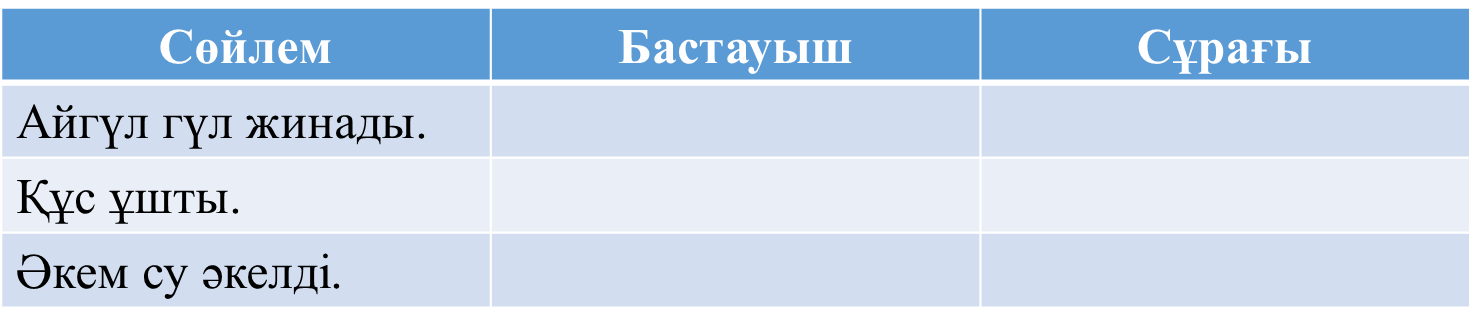Берілген сөйлемдерден бастауышты тауып, сұрақ қой: