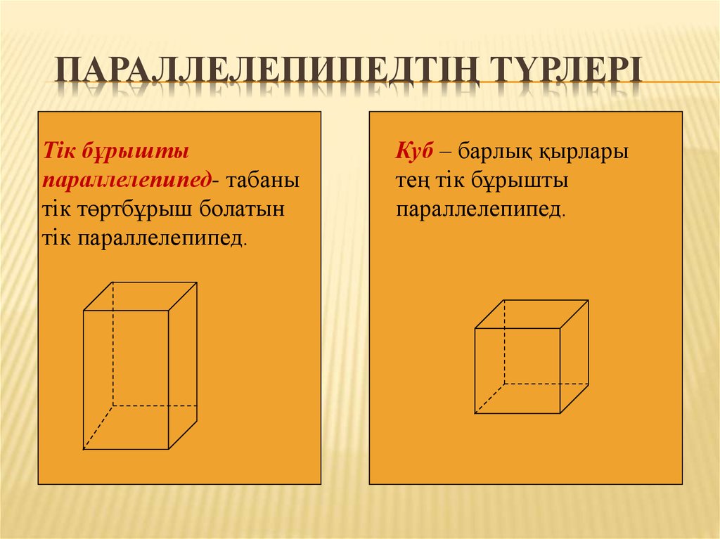Математика Тақырып: Текше, тікбұрышты параллелепипед |