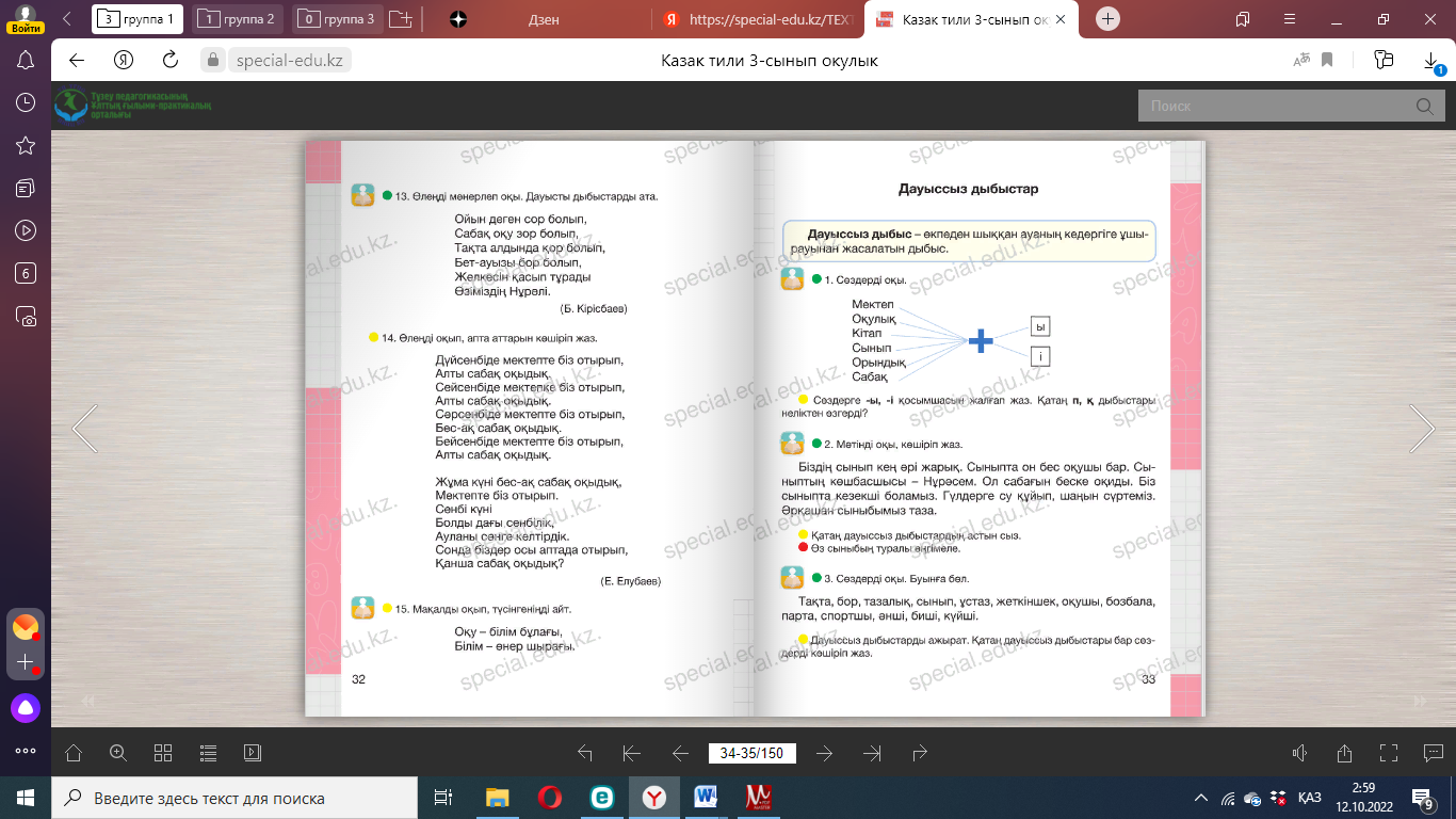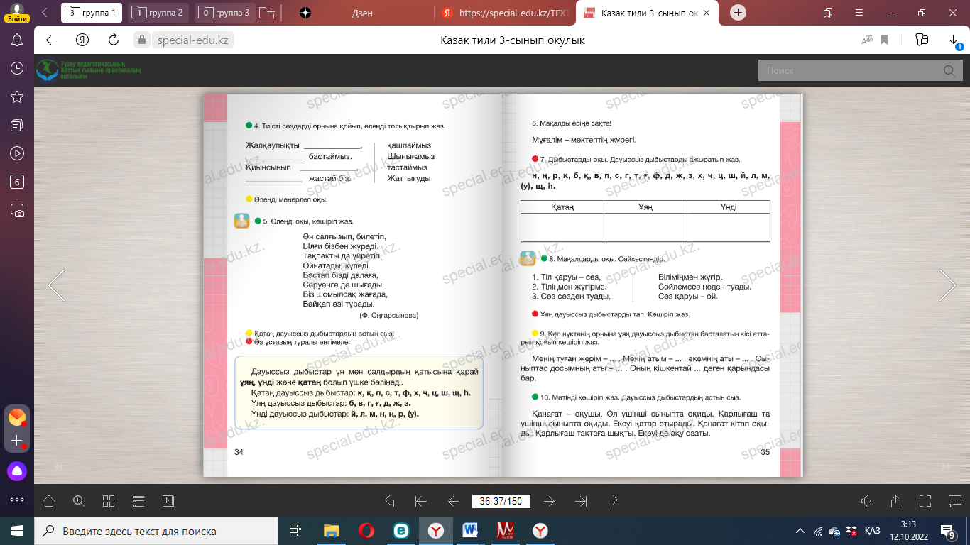 3.1.6.1 қатаң, ұяң ,үнді дыбыстарды атау, ажырату |