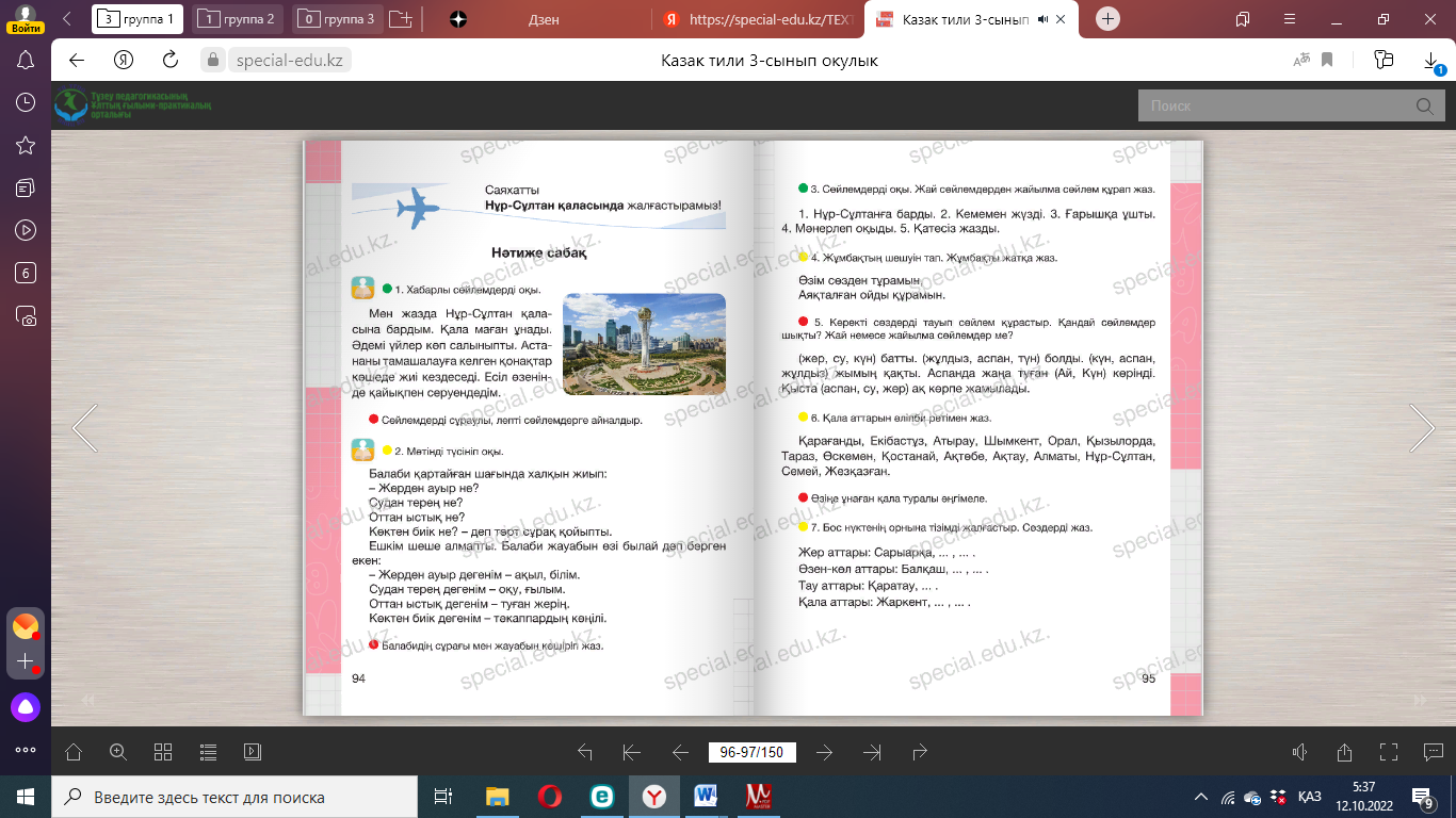 Сабақтың тақырыбы: Мәтінмен жұмыс