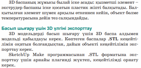 Басып шығару үшін 3D-үлгіні экспорттайды; 3D-баспасын баптайды |