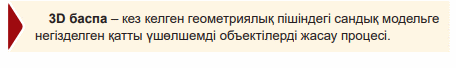 6.3.1.6 басып шығару үшін 3D-үлгіні экспорттау; 6.3.1.7 3D-баспасын баптау |
