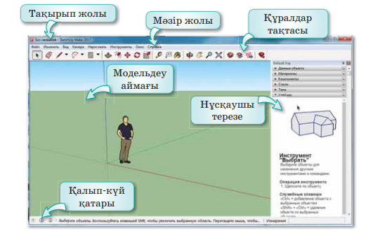 SketchUp программасының құралдарын пайдаланып, конус, цилиндр, сфера моделін құрастырады және оларды түрлендіреді; |