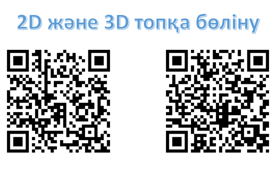 І. Ұйымдастыру кезеңі Оқушылармен амандасу, сабаққа дайындығын бақылау. - Жағымды ахуал қалыптастыру (Кубик әдісі); - QR код арқылы топқа бөлу. 1 – топ – 2D 2 – топ – 3D