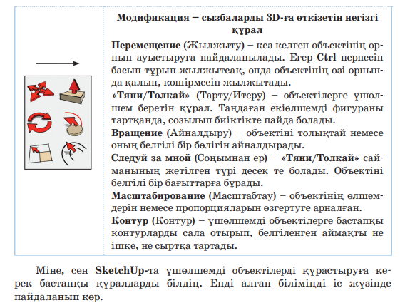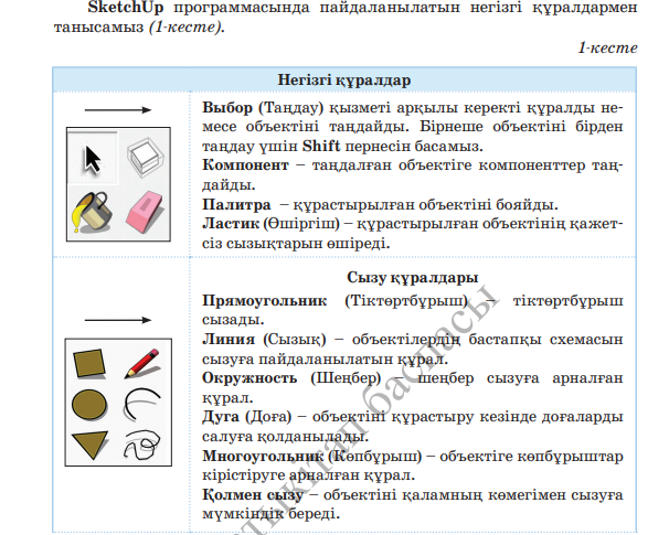 Дескриптор: Sketchup программасының құралдарын пайдаланып, жоба жасай алады.