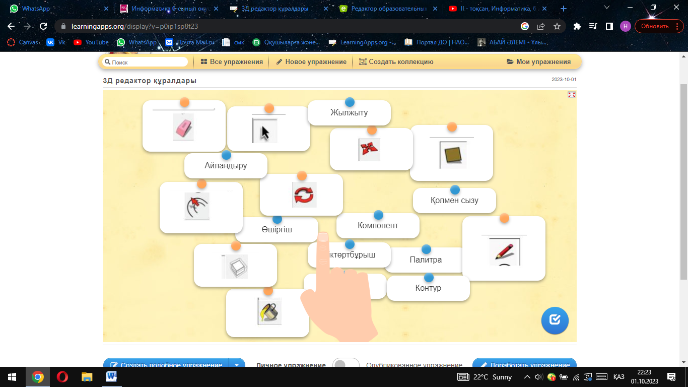 LearningApps бағдарламасында берліген 3D редактор құралдарын сәйкестендіреді
