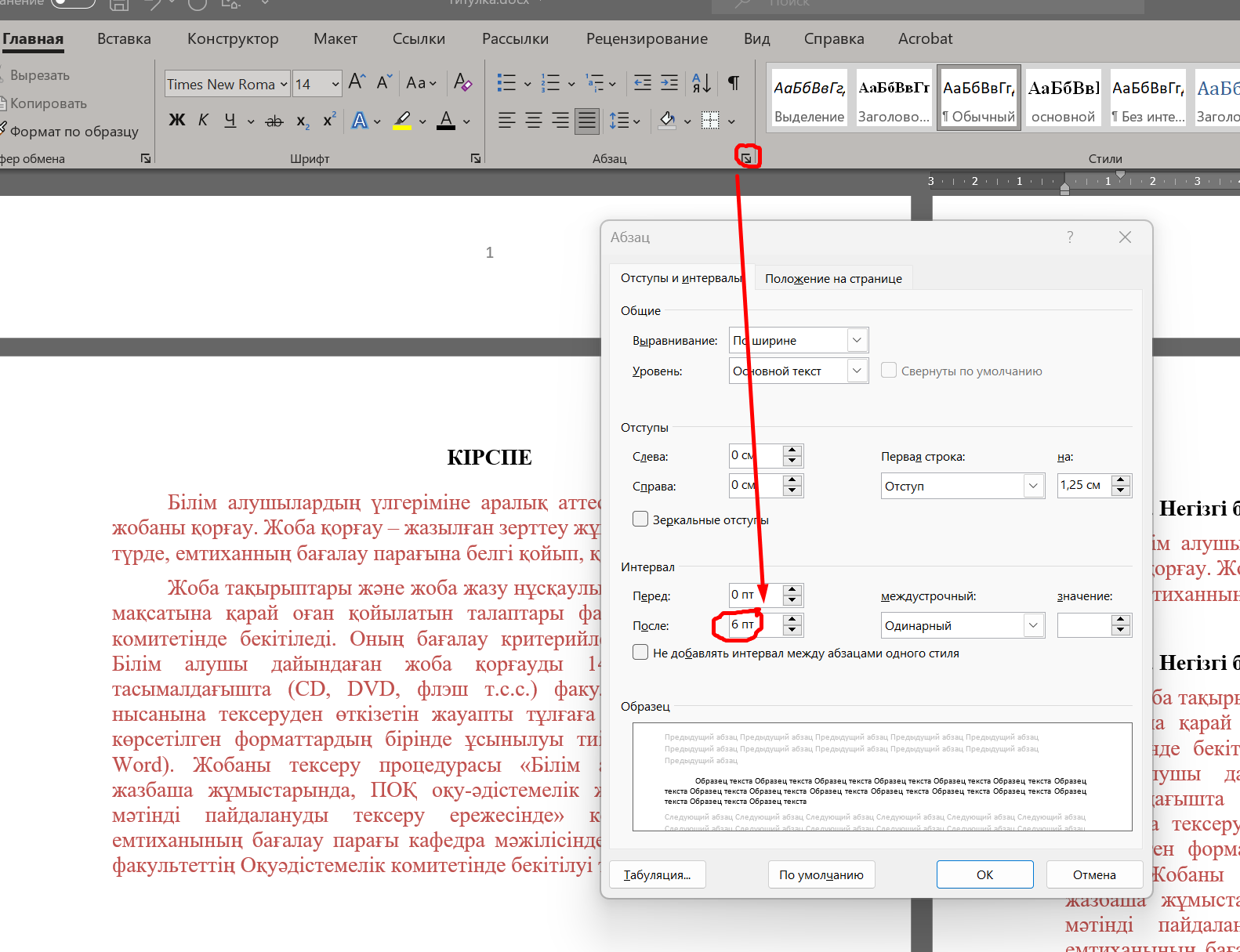 Сурет 1. Негізгі бөлімнің тақырыпшаларының ара қашықтығы