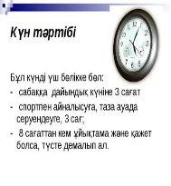 Дескриптор: Оқыған мәтіннің мазмұныны бойынша ойын жазады-1б Күн тәртібін сақтаудың маңызын түсінеді-1б Тамаша! «Әлеуметтік желі» әдісі |