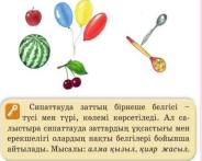 20-жаттығу Суреттерге қара. Оқушылар бұл заттарды дұрыс салыстыра алды ма? Олардың қателерін тауып, өз жауабыңды ұсын 1-жауап: Алма қызыл, ал қарбыз жасыл. 2-жауап дұрыс 3-жауап : Бір қасық ағаштан жасалған екіншісі-темір. Шығармашылық үзіліс Деңгейлік тапсырма 21-жаттығу 1-деңгей. Суреттегі бір затты таңдап, сипаттап айтып бер. 2-деңгей. Суреттегі бір затты таңдап, сипаттап жаз. 3-деңгей. Өзің таңдаған екі затты салыстыра отырып, сипаттап жаз. Үй тапсырмасы 22-жаттығу Сендер сиқырлы қарындащ болатынын білесіңдер ме? Сол қарындаштарыңмен берілген пішіндерді сыныптағы заттарға айналдырып салып кел. Сол заттарға сипаттау мәтінін құрастыр. Кері байланыс