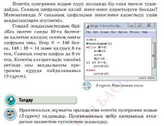 4.3 While циклі 8-сынып ҚМЖ Тапсырмалардың дискрипторлары, программалық кодтары анық жазылған.