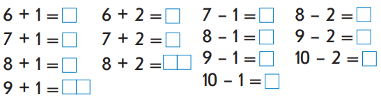 10-ға дейінгі сандардың құрамын қайталайсың, қосып-азайтасың. |