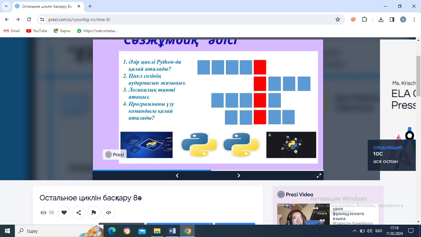 Python тілінде алгоритмдерді программалау Күні:15.02.2024ж. Мұғалімнің аты-жөні: Сынып: 8 Қатысқандар: Қатыспағандар: |