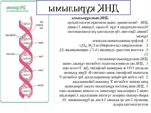 Барлық 400 000 материалдарды шексіз жүктеу мүмкіндігіне ие боласыз 1 990 ₸ 49 000₸ 1 айға қосылу Материалға шағымдану Бұл материал сайт қолданушысы жариялаған. Материалдың ішінде жазылған барлық ақпаратқа жауапкершілікті жариялаған қолданушы жауап береді. Ұстаз тілегі тек ақпаратты таратуға қолдау көрсетеді. Егер материал сіздің авторлық құқығыңызды бұзған болса немесе басқа да себептермен сайттан өшіру керек деп ойласаңыз осында жазыңыз Жариялаған: Ильяс Аяжан ДарынқызыШағым жылдам қаралу үшін барынша толық ақпарат жіберіңіз §49. ДНҚ, гендер және хромосомалар,олардың құрылымы
