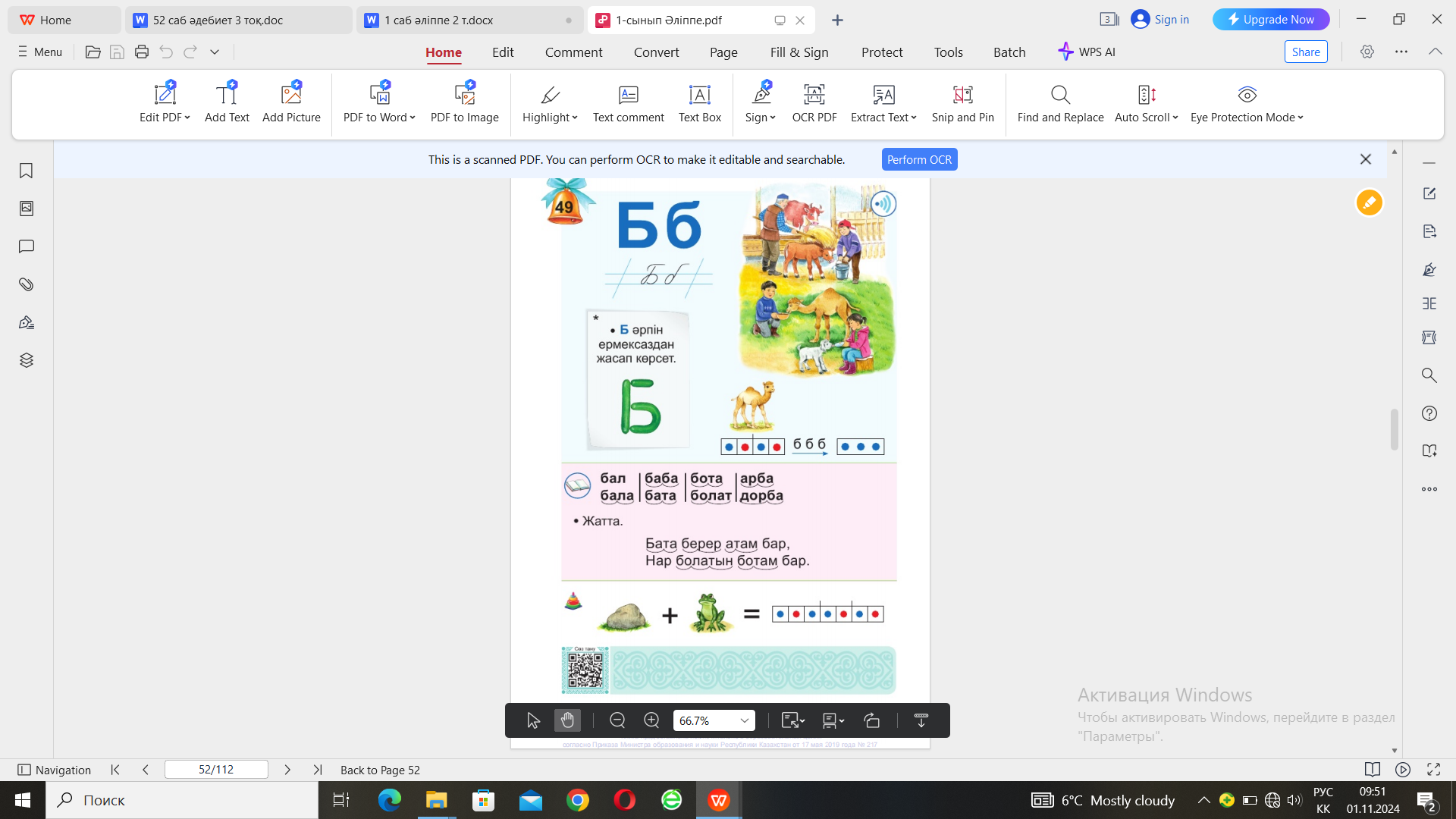 «Әліппе» оқулығы 1 сынып 2021ж 52-бет №2 жазу дәптері Үнтаспа, смартфон