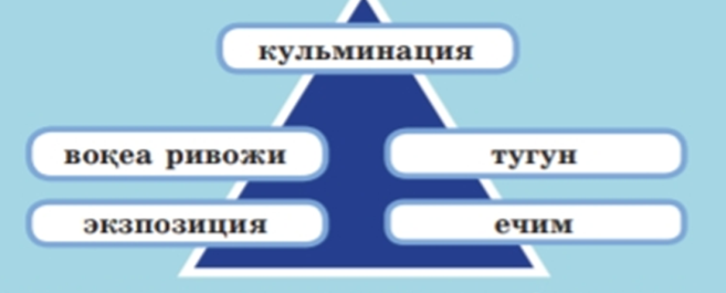 2.Таҳлил ва талқин 1.”Воқеалар тоғи ” усули воситасида достон сюжет-композициясини таҳлил қилинг.