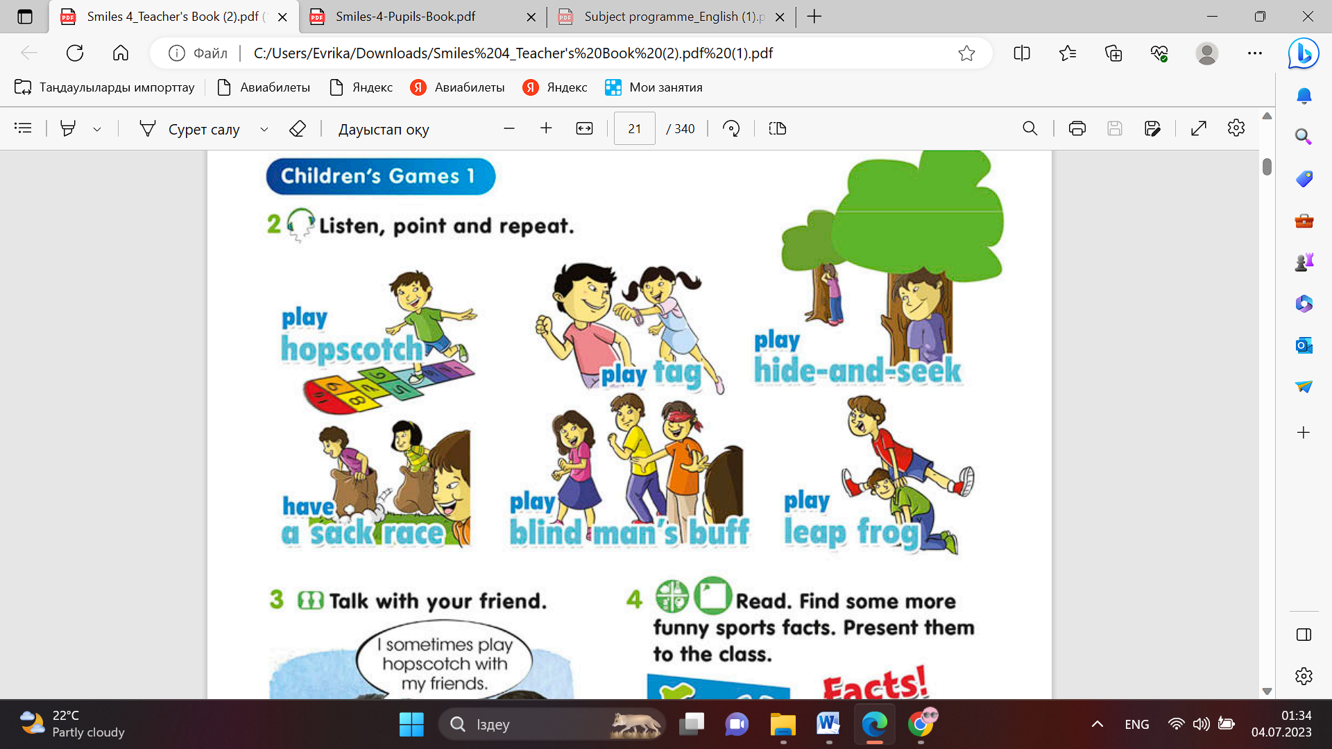 Learners will be able to: - To talk about sports - To talk about children’s games |
