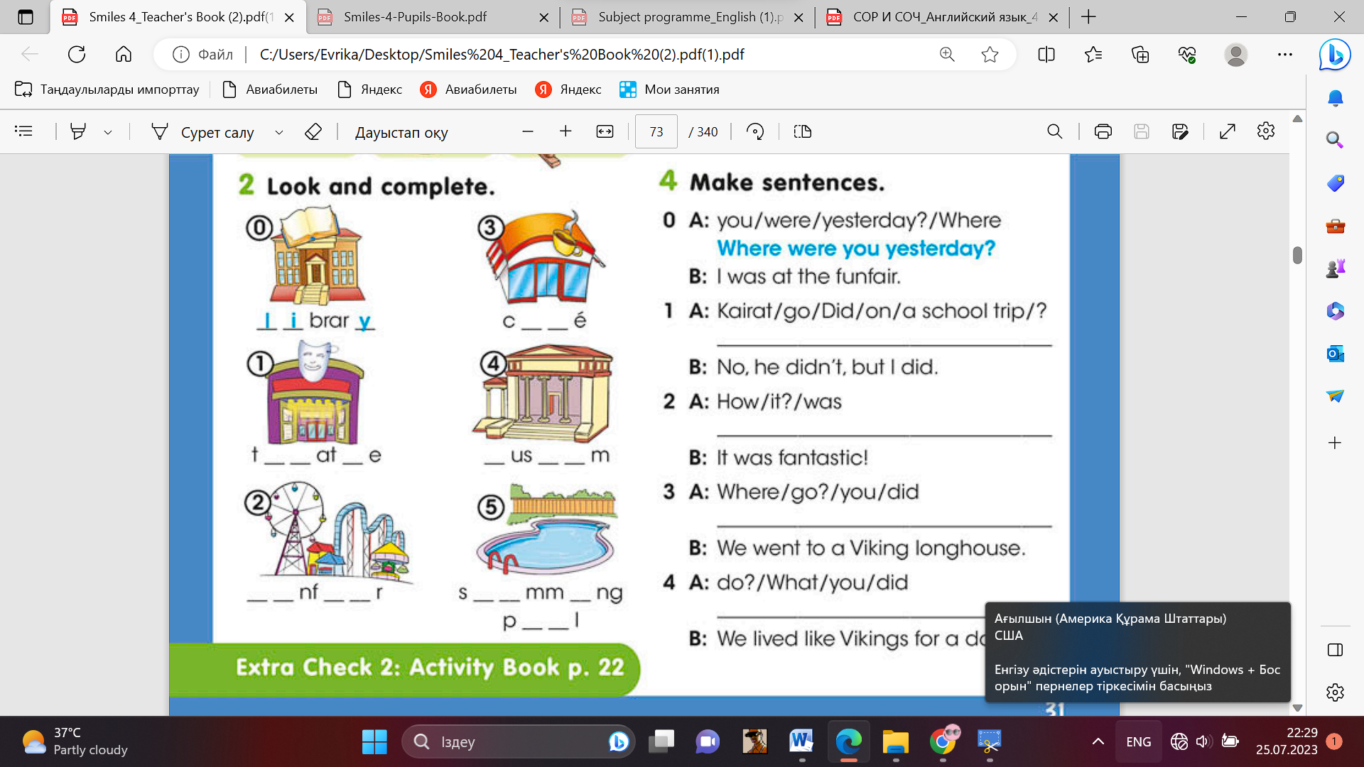 Learner read and write. Find the correct answer ANSWERS 2 at the library 3 at the shopping centre 4 at the funfair 5 at the café 6 at the theatre |