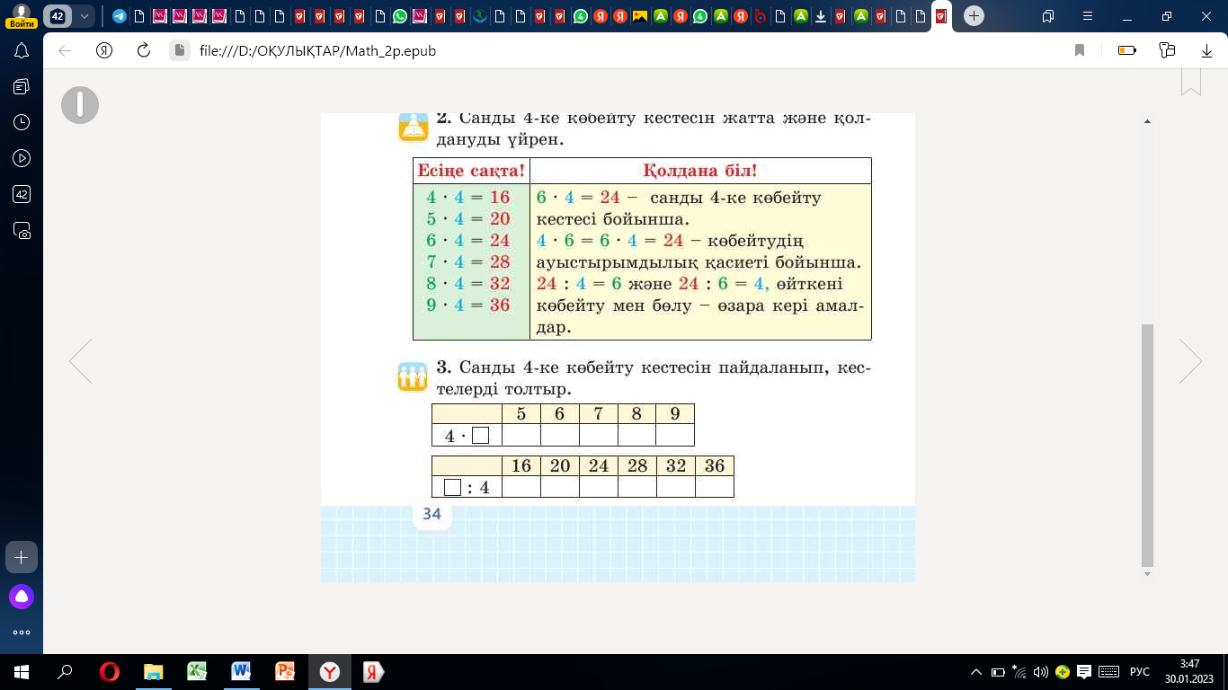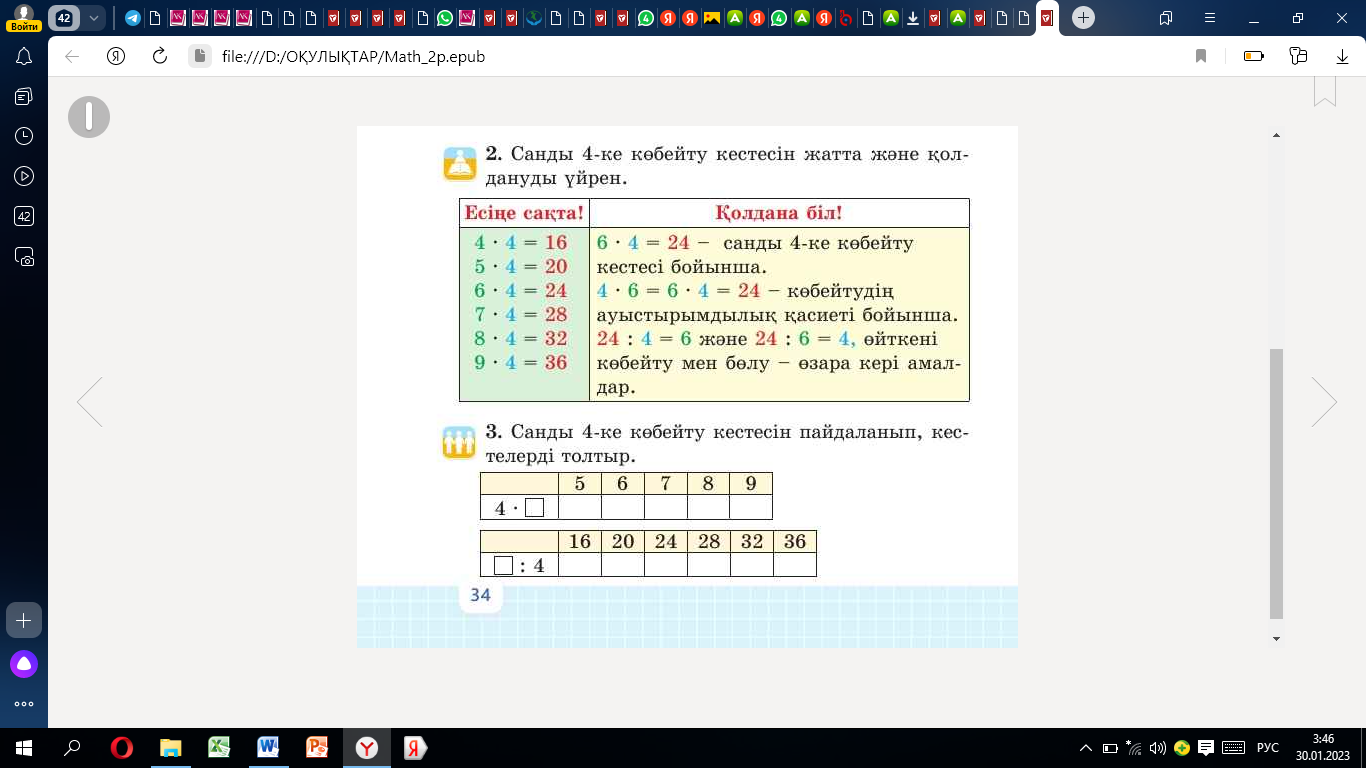 4-ке көбейту кестесі ҚМЖ + көрнекілік 2 сын