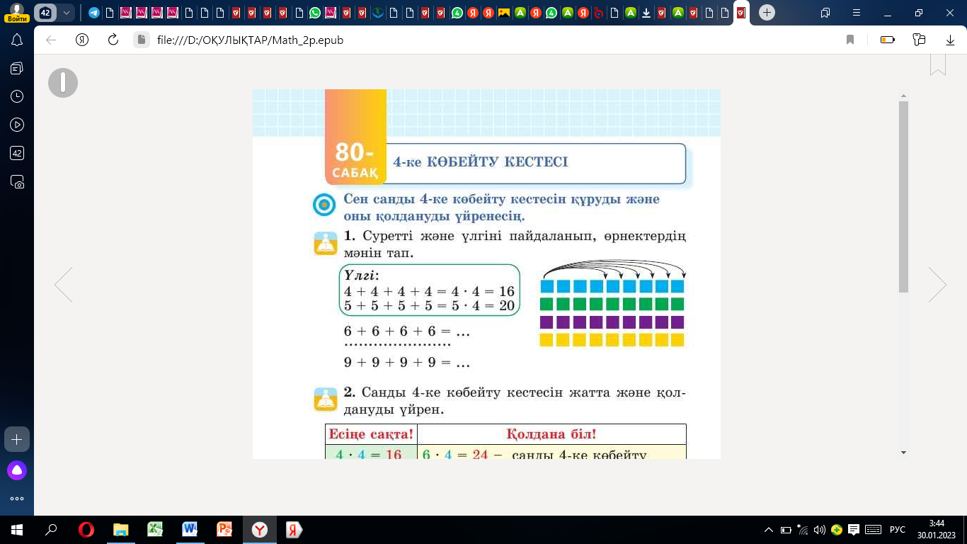 Санды 4-ке көбейту кестесін құру, қолдану |