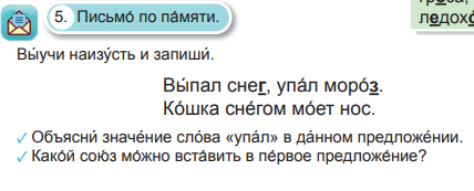 Объясняют значе́ ние сло́ ва «упа́ л» в да́ нном предложе́ нии. Отвечают на вопросы:✓ Како́ й сою́з мо́ жно вста́ вить в пе́ рвое предложе́ ние?