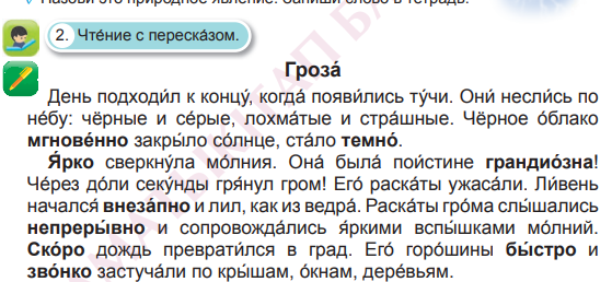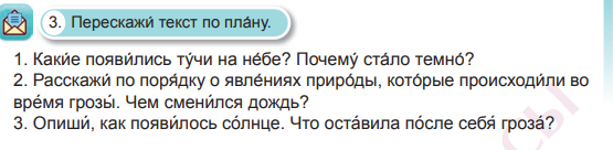 Выписывают из текста все природные явления, которые происходили во время грозы.