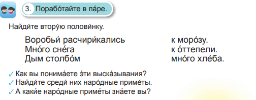 Найти и записать три приметы о погоде |