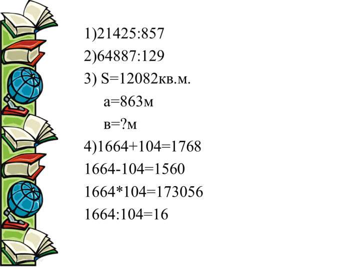- Запишите выражение: частное наибольшего числа и числа, сумма цифр которого равна 10. (2520:280)