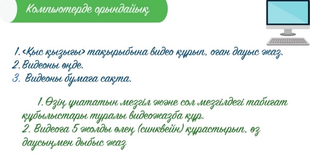 Үй жұмысы: Өзіңе ұнаған тақырыпқа вижео жасап келу. |