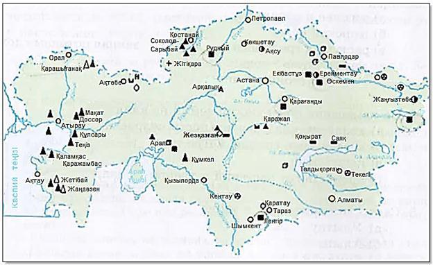Қазақстанның пайдалы қазбалар картасына қара.