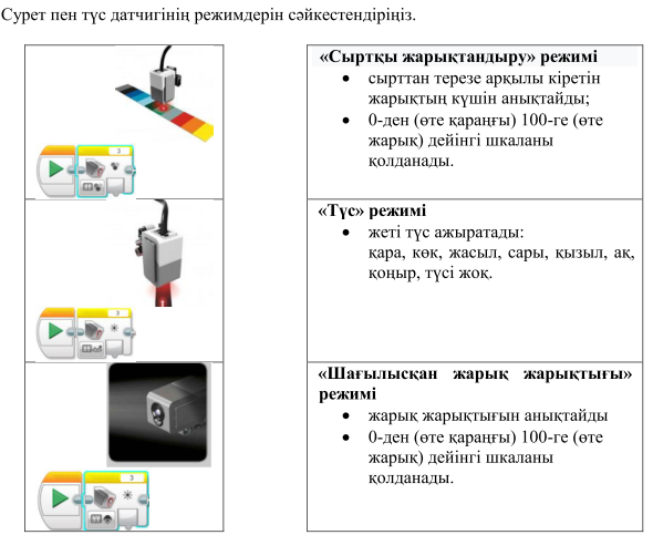 4.5.1.1 түс датчигін қолдану |