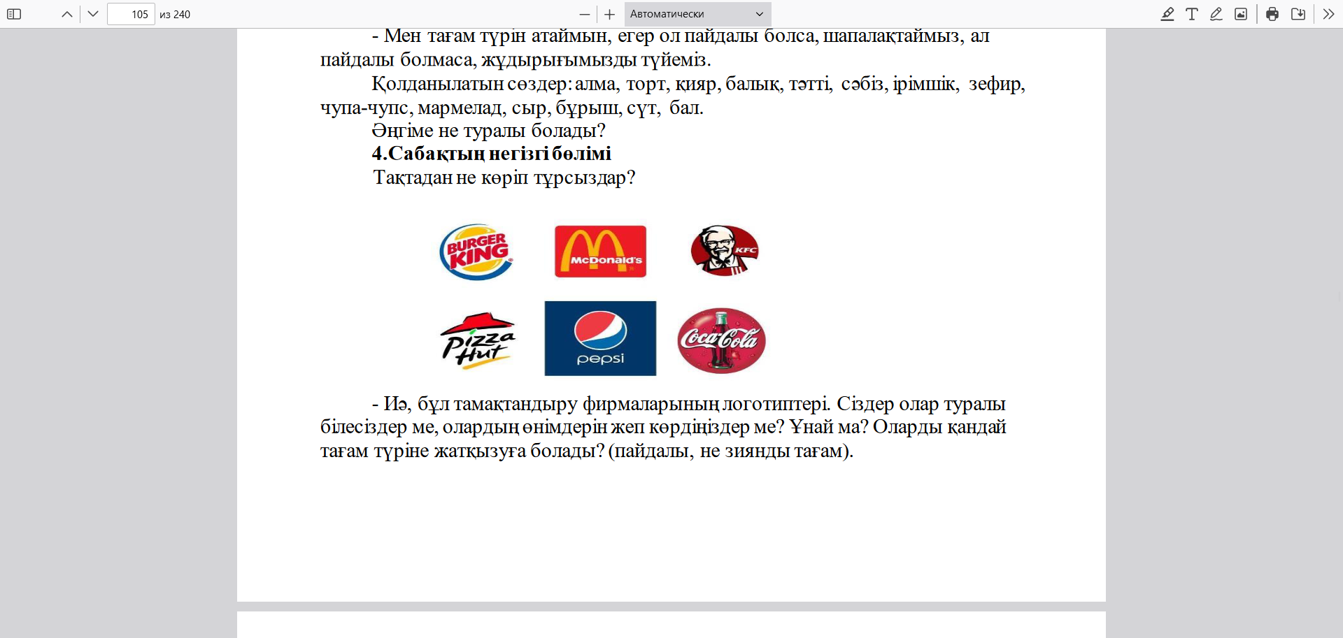 Иә, бұл тамақтандыру фирмаларының логотиптері. Сіздер олар туралы білесіздер ме, олардың өнімдерін жеп көрдіңіздер ме? Ұнай ма? Оларды қандай тағам түріне жатқызуға болады? (пайдалы- не зиянды тағам) Кімнің телефонында бұл қосымша жүктелмеген?