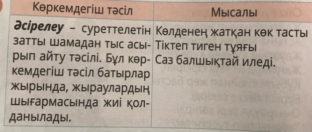 Көркемдегіш құралдардың қолданысын анықтайды, әдеби шығарманың түрлерімен танысады |