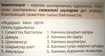 4.2.2.1 шығарманы қайта құруға, интерпретациялауға және бағалауға негізделген сұрақтар қою және жауап беру |