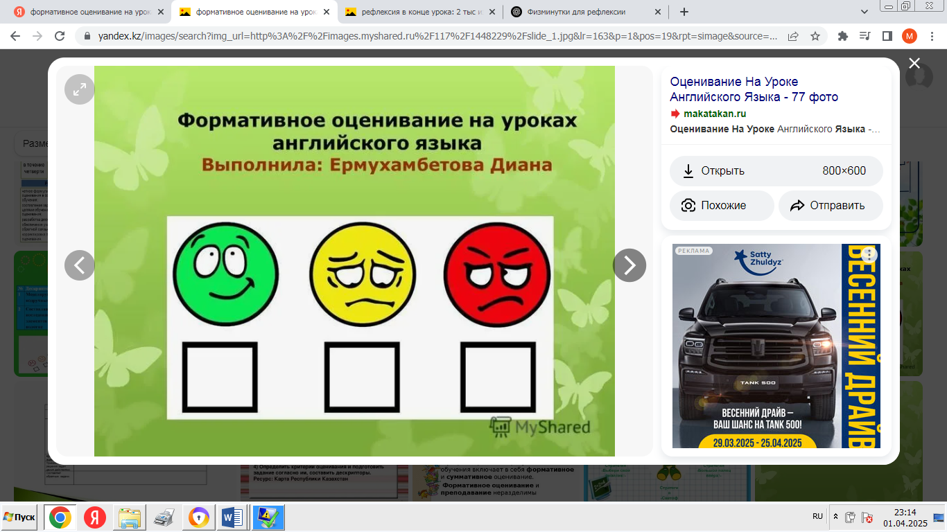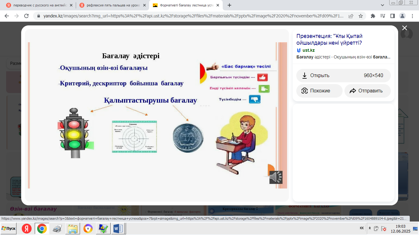 үшін. «Өзін-өзі бағалау» формативті бағалау - ауызша сөйлеуді бағалау. |
